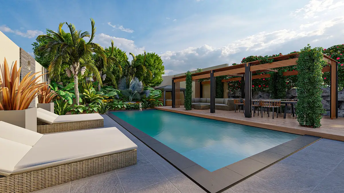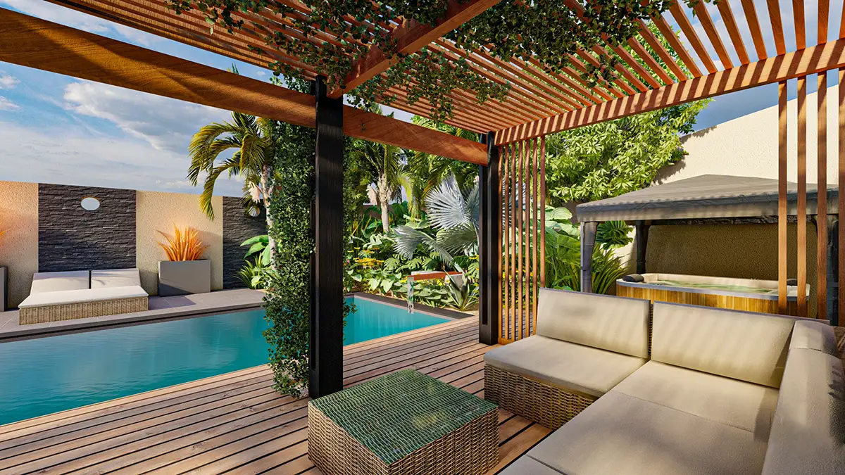 Notre bureau d’études a réalisé une conception complète du jardin, comprenant des visuels 3D immersifs, un plan de pergola sur mesure, ainsi que la sélection du mobilier extérieur pour créer une expérience cohérente et harmonieuse.