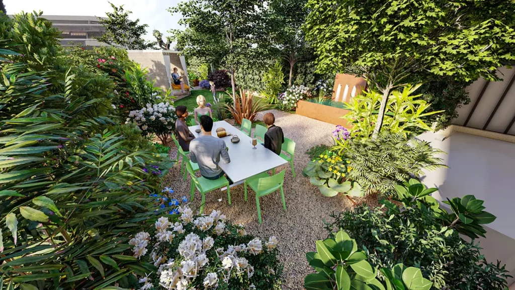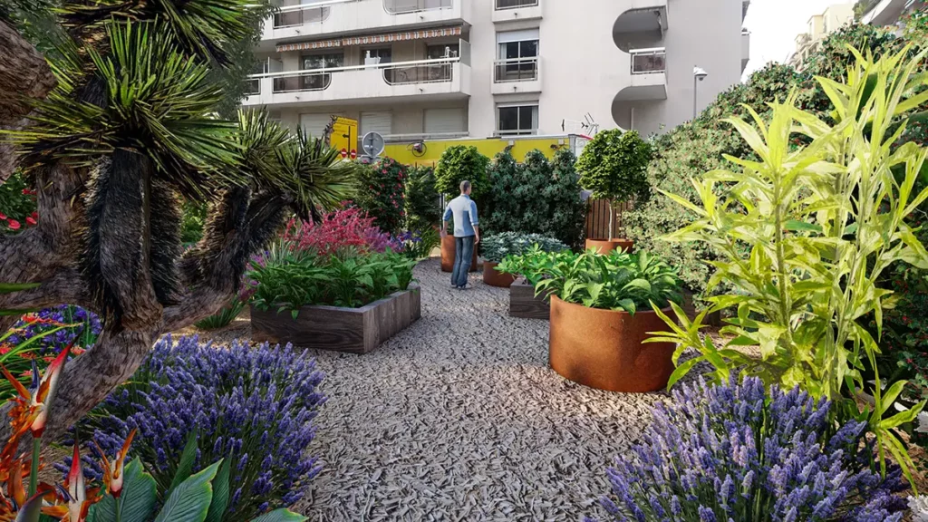 Situé en plein centre-ville de Nice, le Jardin Cent Soucis est la preuve qu’un petit jardin peut devenir un véritable havre de verdure. Pour ce client particulier, notre mission a été de concevoir un espace extérieur complet et harmonieux, mêlant potager, détente et repas, dans une surface réduite.